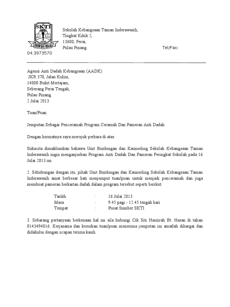 Contoh Surat Jemputan Penceramah. Mansuruddin bin mohamad ibrahim 651202 61 5011 57 10 no 37 1 taman koperasi polis. Contoh surat mohon sumbangan.